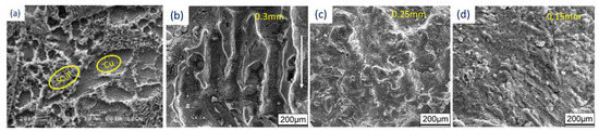 The urge to obtain densified components with enhanced mechanical properties forced the research community to develop the laser melting process. The process stands out for its ability to produce parts with minimal post-processing cycles and material waste. SLM has the same procedure and apparatus as the SLS process. The only difference is that the complete melting and solidification of powders take place during the SLM process, whereas in the SLS process, just sintering takes place. The continuous improvement in the laser processing parameters, such as focused spot size, high laser power, smaller layer thickness, etc., has altered the metallurgical and mechanical properties [111]. As a result, SLM is best suited for producing parts with 99.99% relative density without any post-processing methods [112]. Li et al. [113] and Santos et al. [114] processed steel components using SLM and found that high scan speeds result in porosity in samples, along with a reduction in tensile strength. Figure 7 indicates the variation in porosity and microstructure in stainless steel samples prepared through SLM at different scanning speeds, wherein a significant difference in the morphology of the melt pool boundaries is visible.