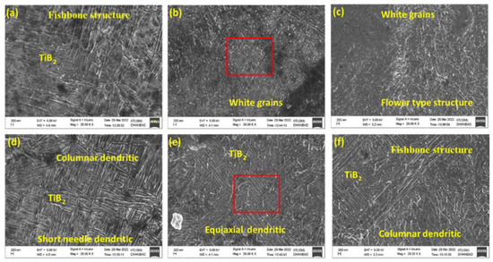 FESEM images indicating different microstructures on the prepared cladded samples showing (a–c) upper portion (d–f) middle portion [172].