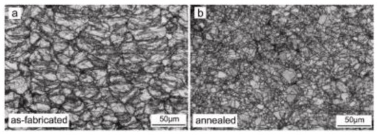 The powder bed is maintained at high temperatures, i.e., more than 870 K, and requires overnight cooling after job completion. E-PBF involves comparatively more processing parameters than LBPF technology. Some of the parameters include electron beam focus, power, scan speed, diameter, beam spacing, plate temperature, pre-heating temperature, contouring systems, and scan strategies [93]. The process parameter optimization is comparatively more difficult in the case of the E-PBF process than SLM; thus, only a limited number of materials can be processed through this method, i.e., CoCrMo [145], Ti grade 2 [146], Inconel-718 [147], Ti grade 5 [148], etc. The restrictions during the manufacture of intricate lattice structures (honeycomb) and low processing time make the process challenging. However, larger-sized products can be manufactured easily through this process irrespective of the substrate plate’s size. In a recent study, AlN coatings were produced over Ti6Al4V substrate through EB-PBF technology [149]. The authors achieved an adherent coating on the substrate without altering the core’s microstructure. The hybridization of EB-PBF with other methods such as chemical vapor deposition and atomic layer deposition allows for improved coating properties [150,151]. It is not advised to produce parts that constitute volatile components such as Mg, Zn, Bi, Pb, etc., through the E-PBF process. It is effective enough to process brittle materials, unlike SLM. The poor thermal expansion and contraction of intermetallic (brittle) materials tend to induce the formation of defects (solidification cracks) by restricting them to cool down at a slower rate. In this regard, SLM fails to slow down the cooling rate, thereby leading to crack propagation, while E-PBF allows the drop in cooling rates by increasing the temperature of the powder bed (~870 K) [152]. Thus, intermetallic materials such as TiAl and high-entropy alloys can be processed through the E-PBF process with careful consideration of temperature.