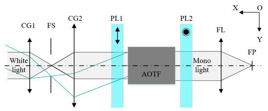 - Zhang, C.; Wang, H.; Zhang, Z.; Yuan, J.; Shi, L.; Sheng, Z.; Zhang, X. Narrowband double-filtering hyperspectral imaging based on a single AOTF. Opt. Lett. 2018, 43, 2126–2129. [Google Scholar] [CrossRef]