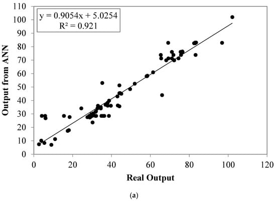 To further assess the performance of the two models, the authors also conducted a statistical analysis and presented the results in Table 5. The statistical analysis included various performance measures, such as mean absolute error, root mean square error, and coefficient of determination. These measures determined that the ANN model exhibited excellent agreement with the actual experimental data, while the MLR model showed comparatively lower performance.