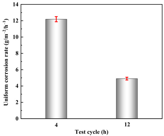 The uniform corrosion rate was calculated by the weight-loss method according to the following equation: