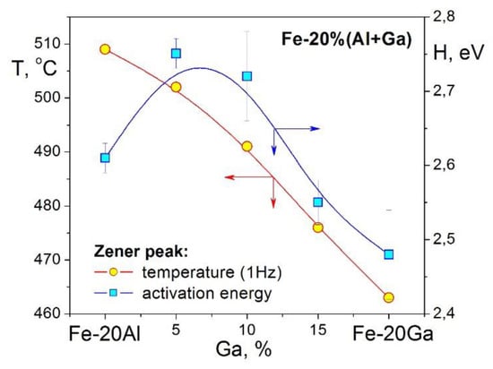 - Chubov, D.G.; Palacheva, V.V.; Cifre, J.; Chang, H.W.; Jen, S.U.; Balagurov, A.M.; Golovin, I.S. Mechanisms of anelastic relaxation in ternary Fe-20(Al+Ga) alloys. Submitted.