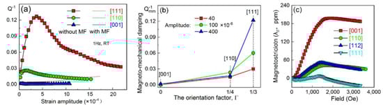 - Golovin, I.; Chubov, D.; Berezner, A.; Shcherbakov, A.; Schlagel, D.; Chang, H. Magnetostriction and damping of forced vibrations in Fe-Mo single and polycrystal alloys. J. Alloys Compd. 2022, 925, 166786. [Google Scholar] [CrossRef]