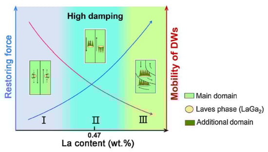 - Golovin, I.; Palacheva, V.; Zadorozhnyy, V.; Zhu, J.; Jiang, H.; Cifre, J.; Lograsso, T. Influence of composition and heat treatment on damping and magnetostrictive properties of Fe–18%(Ga + Al) alloys. Acta Mater. 2014, 78, 93–102. [Google Scholar] [CrossRef]