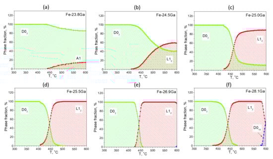 | Alloy | D03/B2 | Fe13Ga9 | L12 | α-Fe6Ga5 |