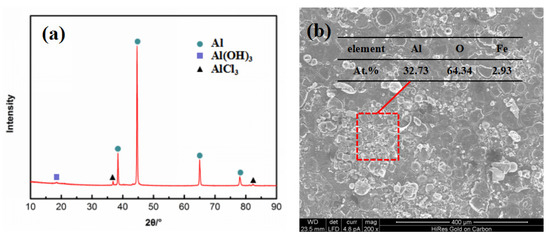 Images of corrosion products of the 7075 alloy after exposure for 6 months in the marine atmospheric environment: (a) XRD, (b) SEM morphology, and EDS result.