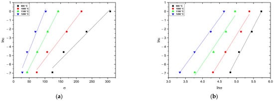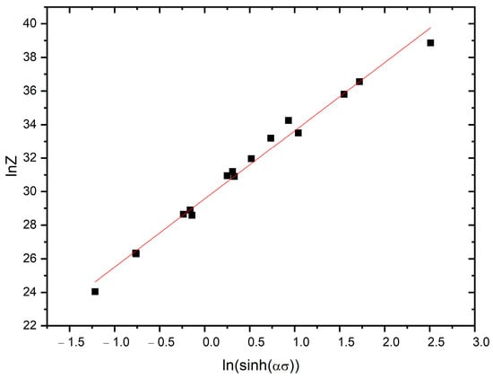 The n parameter can be derived from Equation (3), by conducting a linear fitting of  against ln(sinh(ασ)), Figure 6a.