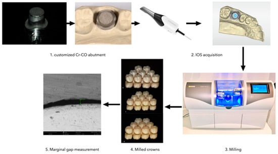 This study has some limitations related to study design. As an in vitro experiment, this could not include in vivo factors, such as patient cooperation or contamination with biologic fluid during the scanning process. It must indeed be emphasized that while fit is a critical factor in the clinical success of complete crowns, it is only one of several contributing factors. Another limitation is that only one scanner system and one milling machine was used. Further study and clinical applications should be performed involving cyclic fatigue [89] in the experimental design to better simulate clinical scenarios. Furthermore, further studies on the biocompatibility, biomechanics, and biomimetic properties [90,91] of the investigated materials should be performed.
