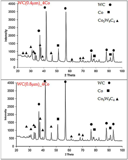 - Zhao, S.; Song, X.; Wei, C.; Zhang, L.; Liu, X.; Zhang, J. Effects of WC particle size on densification and properties of spark plasma sintered WC–Co cermet. Int. J. Refract. Met. Hard Mater. 2009, 27, 1014–1018. [Google Scholar] [CrossRef]