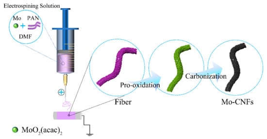 2.1. Preparation of Mo-Doped Carbon Nanofibers