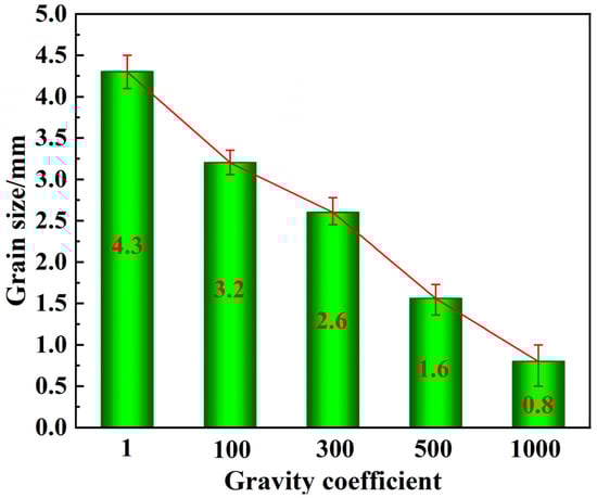 Average grain size of the Cu-0.5Sn alloy under different gravity coefficients.