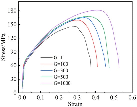The stress–strain curves of Cu-0.5Sn alloys under different gravity coefficients.