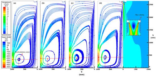 3.2. Argon Recirculation Velocity Field in Different Pressure
