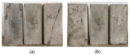 The failure morphology of prism specimens: (a) different replacement ratio (b) different BF content.
