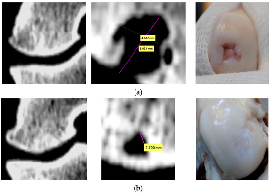 In all the treatments applied, the postoperative examinations revealed that the bone gaps presented in the CT images (Figure 4) are made of fibro-cartilage tissue (mainly with collagen type I) [28]. Initiation and development of the collagen fibril degradation can occur locally, in regions where the stress exceeds the limit of 5 MPa. This threshold was determined experientially (data from the Osteoarthritis Initiative [5]). Actual investigation shows some areas of reconstruction that contain UC (consist of collagen micro-fibril), which possess tensions between 7 to 15 MPa after the normal compression pressure was applied (Figure 6b,d). This fact could be a possible explanation of why the cartilage plate did not completely regenerate after 7 months postoperatively, especially in Case 1.