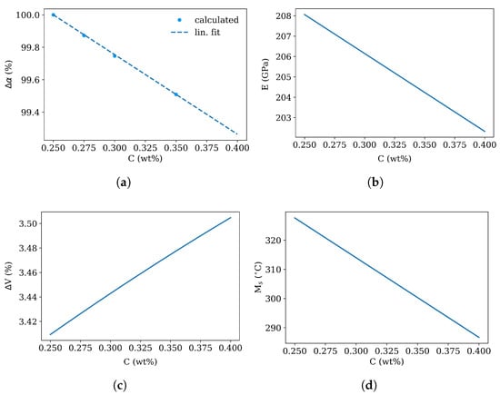- The volume expansion is changed as a function of carbon content from 0.25 to 0.4 wt% using the work of [22], see Figure 5c.