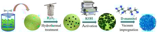 Wet yeast cells (Saccharomyces cerevisiae M 3013) were laboratory prepared by batch ethanol fermentation, according to the method described in the literature [22]. D-mannitol (98 wt%) and KOH (90 wt%) were obtained from Macklin Co., Ltd., Shanghai, China. Ethanol (98%, v/v) and H2O2 (30%, v/v) were purchased from Tianjin Fuchen Chemical Reagent Co., Ltd., Tianjin, China.