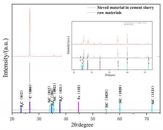 Portland cement type I 42.5 according to Chinese National Standard GB 175-2007 was used as the binder. The water consumption of the cement was 26.1% [19]. The following were used to produce the paste samples: Fe powder with a particle size between 25 and 100 μm and a density of about 7.85 gr/cm³; C powder with a particle size distribution of 25–100 μm and a density of about 1.60 gr/cm³. The following were used as tag materials: silicon carbide powder with a particle size of 25–100 μm and a density of about 3.23 gr/cm³; boron carbide (B4C, a ceramic material composed of boron and carbon atoms that has good chemical resistance and does not interact with water or cement) powder with a particle size of 25–100 μm and a density of about 2.52 gr/cm³. A polycarboxylic ether-based superplasticizer (SP) was used to adjust the workability. The SP had a solid content of about 20% and a water-reducing rate of more than 30% [20,21].
