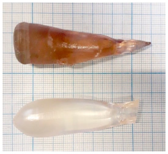 The coloration of the grown crystals differed drastically: the crystal-etalon had a pronounced beige brown coloration typical of ZnWO4 single crystals grown from the usual commercially available chemicals (see, for example, the photos given in [1,2,6,10]). Meanwhile, the “pure” crystal was almost colorless.