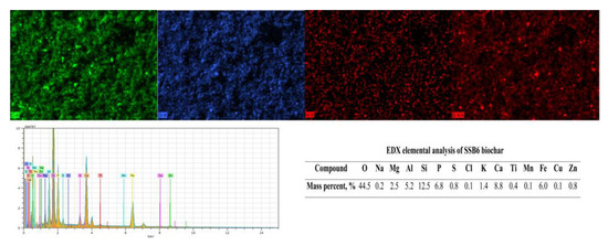SEM-EDX analysis and mapping results of SSB6 biochar.