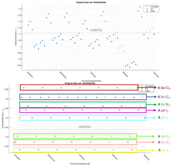 Figure 12 shows the stability data analysis of the perovskite compounds (ABX3)