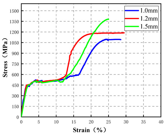 Direct tensile test stress–strain curves of SMA.