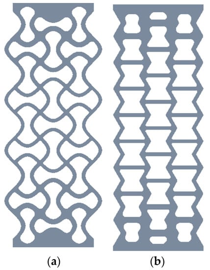 Two examples of cellular structures: (a) chiral structure; (b) re-entrant structure.