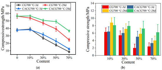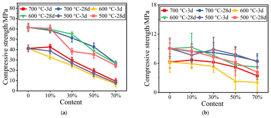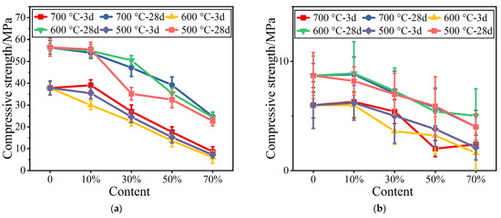 Mechanical strengths of calcined coal gangue. (a) Compressive strength. (b) Flexural strength.