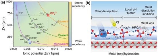 (a) Repellency between common anions and Cl−. (b) Schematic diagram of the anticorrosion mechanism. Reproduced with permission. Ref. [98] Copyright 2022, Elsevier.