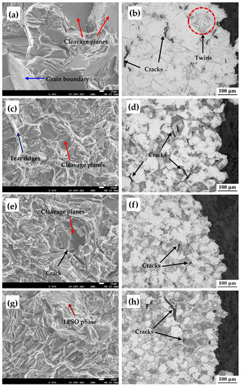 4.2. Effect of the LPSO Phase on the Fracture Mechanism