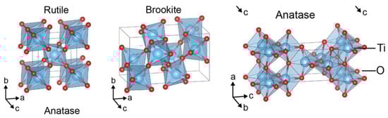 Titania polymorphs structures: rutile, brookite, and anatase (CC BY 4.0 [37]).