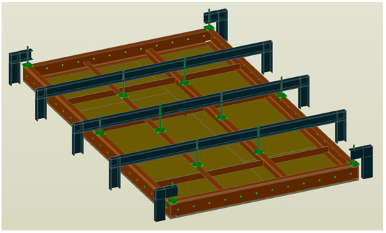 The furnace wall panel is a large welded structure made of sheet metal, flat bars, and a channel (Figure 1). The flat panel wall is made of 5 mm thick sheet metal, the outer frame of 200 mm × 80 mm channel sections with a wall thickness of 10 mm. The internal ribs are made from flat bars with a wall thickness of 6 mm and 80 mm × 80 mm angles with a wall thickness of 6 mm.