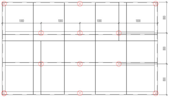 Diagram of the distribution of restraint points in model 1 (Figure 3a) of the welding process of the industrial furnace wall panel.
