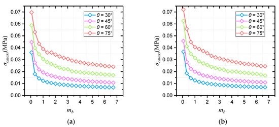 For all the critical strength curves in Figure 3, the value of σcmass drops with the increase in mb, and the dropping speed is decreasing. In principle, the slope stability is improved when the value of mb increases, and the required value of σci is lowered at slope critical state. As a result, the value of σcmass drops according to Equation (13). Under the conditions of the same unit weight, greater strength is required to maintain slope stability at a greater slope angle. Therefore, the reduction factor of σci is less, and the critical value of σcmass is greater. Reflected in Figure 3, the larger the slope angle, the higher the slope critical strength curve.