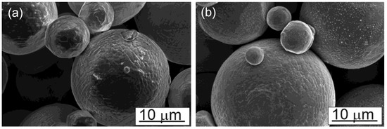 Scanning electron microscopy images of IN718 powder particles were used for this study. (a) Particles are spherical in shape. Larger particle appears to be with few satellites. (b) Closer view of the particles with smooth spherical surface.