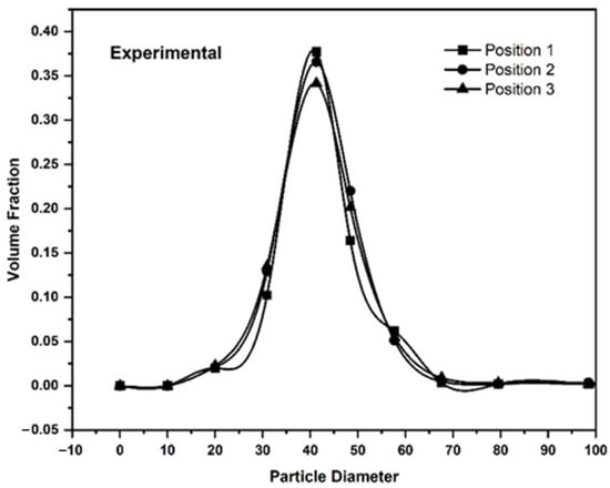 - The results of the simulation modeling and experimental methodologies for powder particle size distribution were nearly equal. Powder particle sizes were evenly dispersed in both procedures. At the same particle size range, the maximum volume fraction of the particles was likewise found to be the same. Powder particle size distribution was identical across all layers in the simulation.