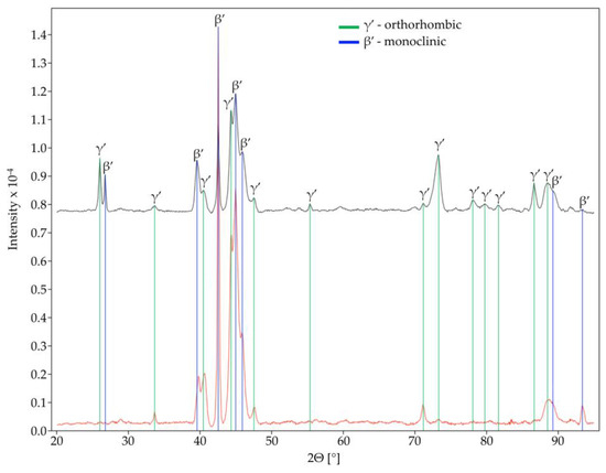 - The XRD structural analysis showed the presence of phases: β′ (monoclinic) and γ′ (orthorhombic).