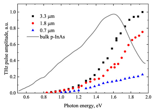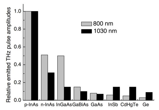 - Adomavičius, R.; Urbanowicz, A.; Molis, G.; Krotkus, A.; Šatkovskis, E. Terahertz Emission from P-lnAs Due to the Instantaneous Polarization. Appl. Phys. Lett. 2004, 85, 2463–2465. [Google Scholar] [CrossRef]