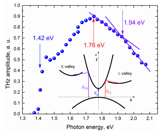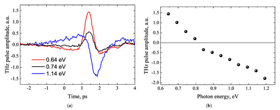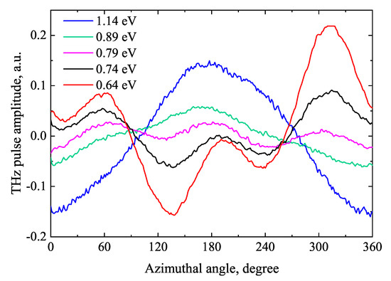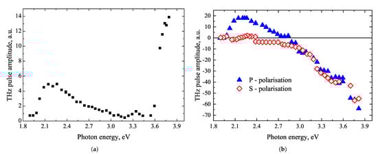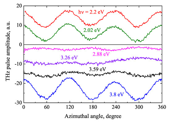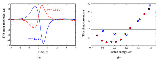 - Malevich, V.L.; Ziaziulia, P.A.; Adomavičius, R.; Krotkus, A.; Malevich, Y.V. Terahertz Emission from Cubic Semiconductor Induced by a Transient Anisotropic Photocurrent. J. Appl. Phys. 2012, 112, 073115. [Google Scholar] [CrossRef]