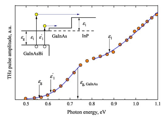 - Karpus, V.; Norkus, R.; Butkutė, R.; Stanionytė, S.; Čechavičius, B.; Krotkus, A. THz-excitation Spectroscopy Technique for Band-Offset Determination. Opt. Express 2018, 26, 33807. [Google Scholar] [CrossRef]