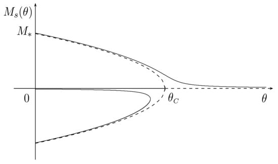 denotes the classical property that the hysteresis curve in the plane is run in the counterclockwise sense. The free energy in the form (48) has the feature that, through the factor , the ferromagnetic behavior approaches the paramagnetic one as . Hysteresis is shown to be modeled by Equation (54), where is the paramagnetic susceptibility and affects the slope changes depending on the sign of . Hence, in general, hysteresis is governed by free energy and a hysteretic function .