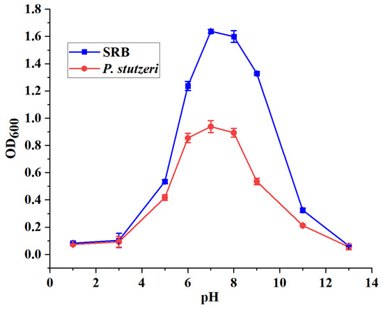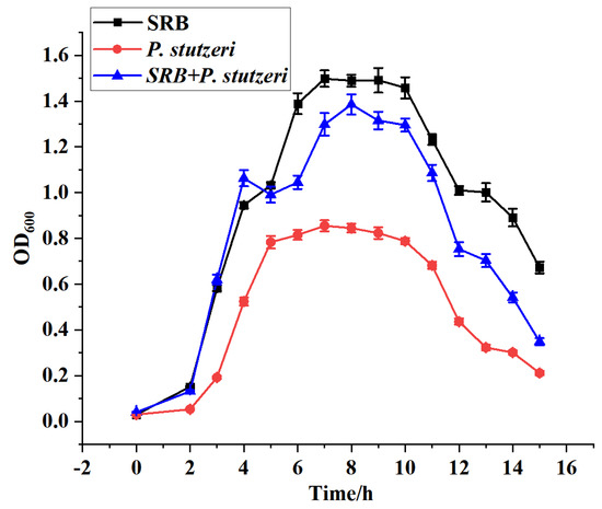 3.2. Growth Characteristics of P. stutzeri and SRB