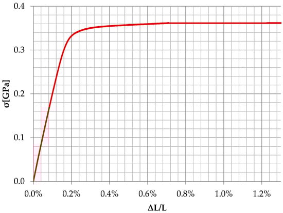The material parameters of a steel beam made of a rectangular section profile were described using an elastic–plastic material model (material parameters are presented earlier at the stage of the description of the subject of research). The material data used in the analysis, both for the composite tape and the adhesive, were taken from [1,20].