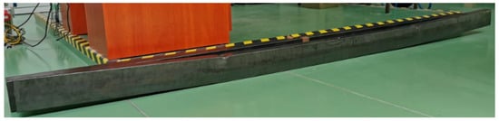 The beams were reinforced with CFRP tapes—Sika CarboDur S512 composite tapes—with cross-sectional dimensions of 50 × 1.2 mm, which were connected to the surface of the beams with SikaDur-30 adhesive.