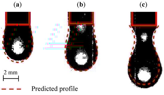 In the liquid bridge mode, the profile of the liquid metal is shown in