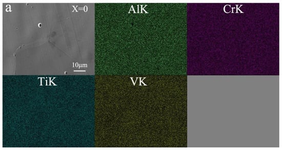 However, despite the application potential being high, the high density of many HEAs greatly inhibits the actual deployment of these applications. For example, the density of a CoCrFeNiMn HEA is 8.1 g/cm3, while the density of refractory high-enthalpy alloys (HEAs) is more than 10 g/cm3. Both of these HEAs have a mass density that is higher than that of steel, which has a density of 7.9 g per cubic centimeter. For the purpose of increasing the effectiveness of systems that convert energy, it is necessary to reduce the weight. This necessitates the use of building and engineering materials that have a low density [14,15,16,17,18,19,20]. Recent studies have shown a significant interest in the development of high-entropy alloys that are also lightweight. While making lightweight HEAs, it is common practice to incorporate significant amounts of light components such as aluminium, titanium, magnesium, and lithium. The incorporation of Al (also for the purpose of alloy strengthening) changes the phase composition and microstructure of HEAs to produce a multiphase microstructure that can include FCC, BCC, and B2 structures [21,22], and the incorporation of Ti can easily lead to the production of secondary phases. Single-phase equiatomic AlCrTiV HEA has a low density of 5.06 g/cm3 and a hardness of 498 HV. The AlCrTiV quaternary system was selected by Huang et al. [23], who further increased the material’s hardness by including lightweight microalloying components. Microalloyed AlCrTiV alloys have a maximum hardness of 710 HV and a density of around 4.5 g per cubic centimeter. In addition to their mechanical advantages, high-performance additives provide excellent resistance to corrosion, which is an important factor in the application of engineering and structural materials.