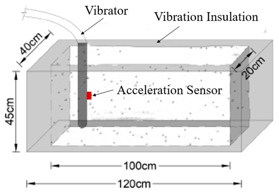However, insufficient vibration time causes problems such as honeycomb structure, voids, and exposed reinforcement in the concrete mixture, while too long a vibration time causes segregation and the uneven distribution of aggregates [6,7]. This may cause significant problems, such as a decline in mechanical strength, increased shrinkage and cracking, and the reduction of chemical erosion resistance, all of which are detrimental to the performance of reinforced concrete structures [8,9,10]. Due to the hidden nature of the concrete interior, the above problems are difficult to detect during vibration construction. It is only after the concrete has hardened and the external formwork has been removed that the various quality problems caused by inefficient vibration processing are exposed, and the repair of these problems in quality is difficult and time-consuming. Although construction specifications place specific requirements on the vibration process [11], there is still a lack of accurate quality evaluation methods, and the quality of vibration construction depends largely on the experience and subjective judgment of workers. Therefore, it is urgent to establish a method for closely monitoring the vibration process that can quantify the quality of vibration processing using relevant data.