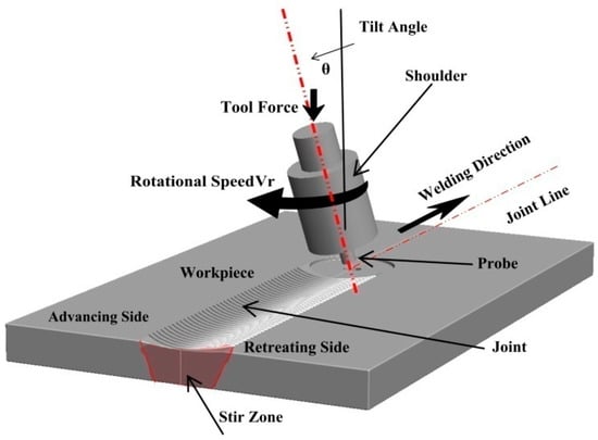 The materials used in aerospace applications are numerous, starting from metallic, ceramic, polymeric, and composite materials [1]. The primary metallic materials used in the aerospace industry include but are not limited to aluminum alloys [2], magnesium alloys [3,4,5,6,7,8,9], titanium alloys [10,11,12,13,14], steel alloys, and Ni-based superalloys. These materials can be classified into low-softening-temperature materials (aluminum and magnesium alloys) and high-softening-temperature materials (nickel-based superalloys, steel alloys, and titanium alloys). During the manufacturing processes of aerospace structures, all types of materials require welding and joining at the highest quality possible. Friction stir welding (FSW) has been proven to satisfy the required quality of welding different types of materials, especially those with low-softening-temperature alloys [15,16,17,18,19,20], and is relatively applied in high-softening-temperature materials such as titanium alloys [21,22,23,24,25] and steel alloys [26,27,28,29,30,31,32,33,34,35]. This is mainly because the available tool materials can be used satisfactorily to produce very long-distance joints without any significant degradation [36,37,38]. FSW’s invention was driven by the need to join the high-strength aluminum alloy series 7xxx and 2xxx, known as non-weldable aluminum alloys, using conventional welding techniques [39]. FSW has progressed and is used in many industrial applications such as marine, railway, automotive, and aerospace [2,40,41,42,43,44,45,46,47]. FSW has been progressively adopted in aerospace applications for welding structures made from high-strength aluminum alloys such as large-volume fuel tanks [45]. Fuel tanks for Delta II and Delta IV rockets were the first significant aerospace applications to use the FSW process to replace the fusion welding techniques [2]. Boeing (the manufacturer) has reported high-cost savings over the previous variable polarity plasma arc (VPPA) process and almost zero defect incidence [2]. In the replacement of the existing rivets in many structures, major airframe manufacturers are investigating the use of FSW [48,49]. The Eclipse 500 business jet was one of the first aircraft to adapt FSW technology in its upper and lower wing skins, cabin skins, side cockpit skins, engine beam, and aft fuselage skins [48]. FSW technology enables faster joining with speeds up to sixty times faster than manual riveting or six times faster than automated riveting with improved quality, resulting in a significant cost reduction. The assembly of the Eclipse 500 using FSW required the design, development, and fabrication of a custom, high-performance FSW system with manipulation and process control capabilities beyond what had previously been produced by the FSW system [48]. NASA’s Space Launch System (SLS) used FSW to manufacture a 39 m-long liquid hydrogen tank using a giant 52 m-tall friction stir welding facility specially built for the SLS [50,51,52,53]. The SLS main stage also comprises a liquid oxygen tank, an aft engine section, an intertank section, and a forward skirt. The thickest aluminum structures ever assembled used friction stir welding in the SLS core stage [50,51,52,53]. Recently, Indian Space Research Organization (ISRO) launched a rocket in 2018, the first to fly with propellant tanks constructed using FSW, and claimed that FSW is a more efficient manufacturing method to improve the productivity and payload capability of the vehicle [18]. In terms of high-softening-temperature materials, although the tool materials still limit the wide industrial applications of the FSW process, it has also progressed in some applications, such as in the use of the cast Ti-6Al-4V in the manufacture of the spacecraft propellant tank, aimed at reducing lead time and costs compared to the routes of conventional manufacturing [42]. FSW has numerous advantages over other solid-state methods of severe plastic deformation with the purpose of bonding or joining, such as accumulative roll bonding [54,55,56]. FSW can be used to produce different configuration joints such as butt [57], lap [58], T [37] and corner joints [59]. Recently, FSW principles have been adopted for additive manufacturing in the solid state as well as in different configurations [60].