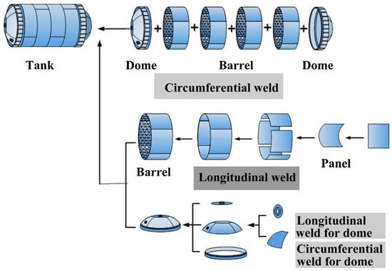 Schematic diagram for structure and main welds of launch vehicle tank [45] (has permission from Elsevier).